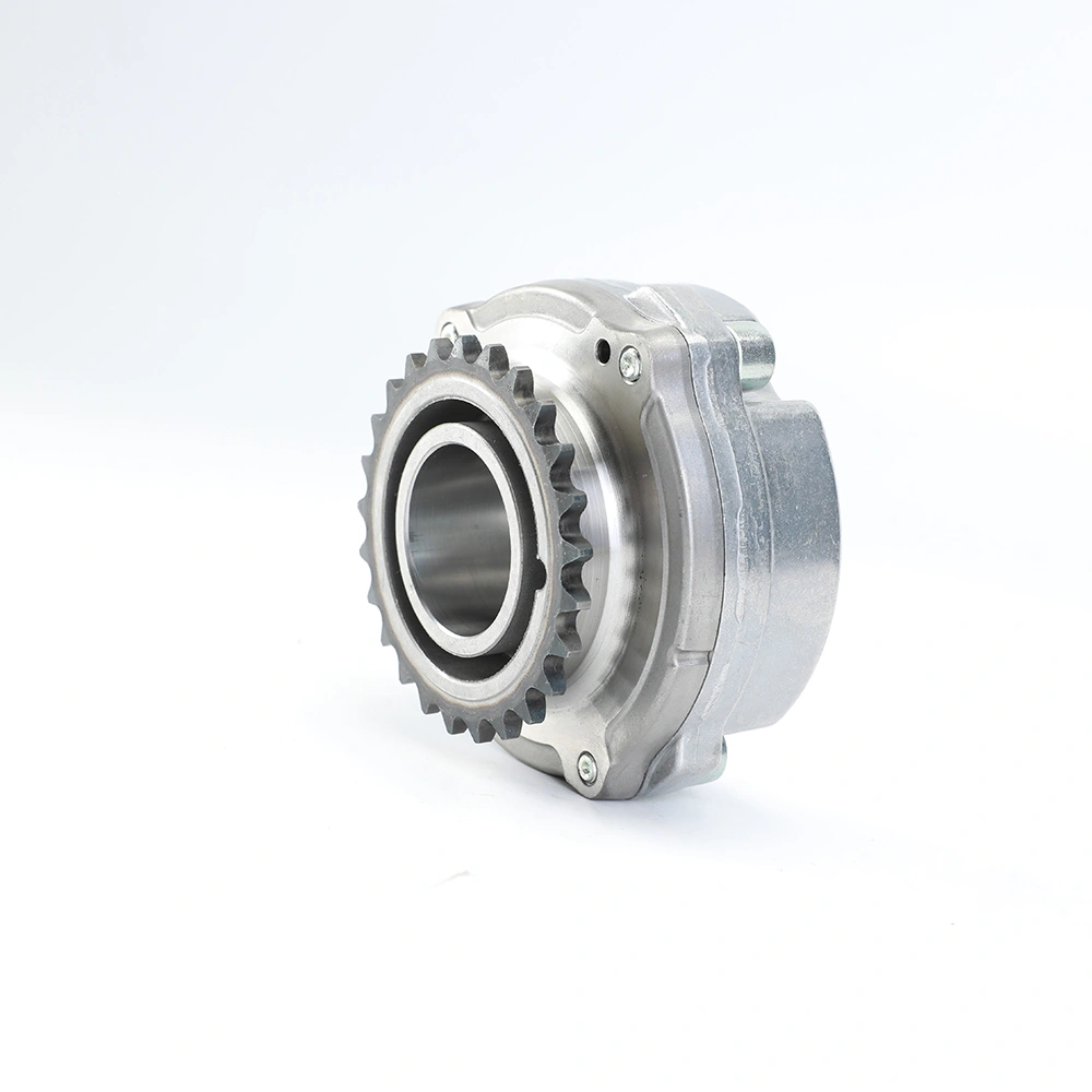 In engine rebuilding or timing system service, the 24350-26800 VVT Camshaft Adjuster is typically replaced together with the timing chain, guides and oil control valve. Wear in the internal rotor mechanism or oil chamber sealing can lead to delayed cam phasing response, cold start rattle or fault codes related to camshaft timing control.
